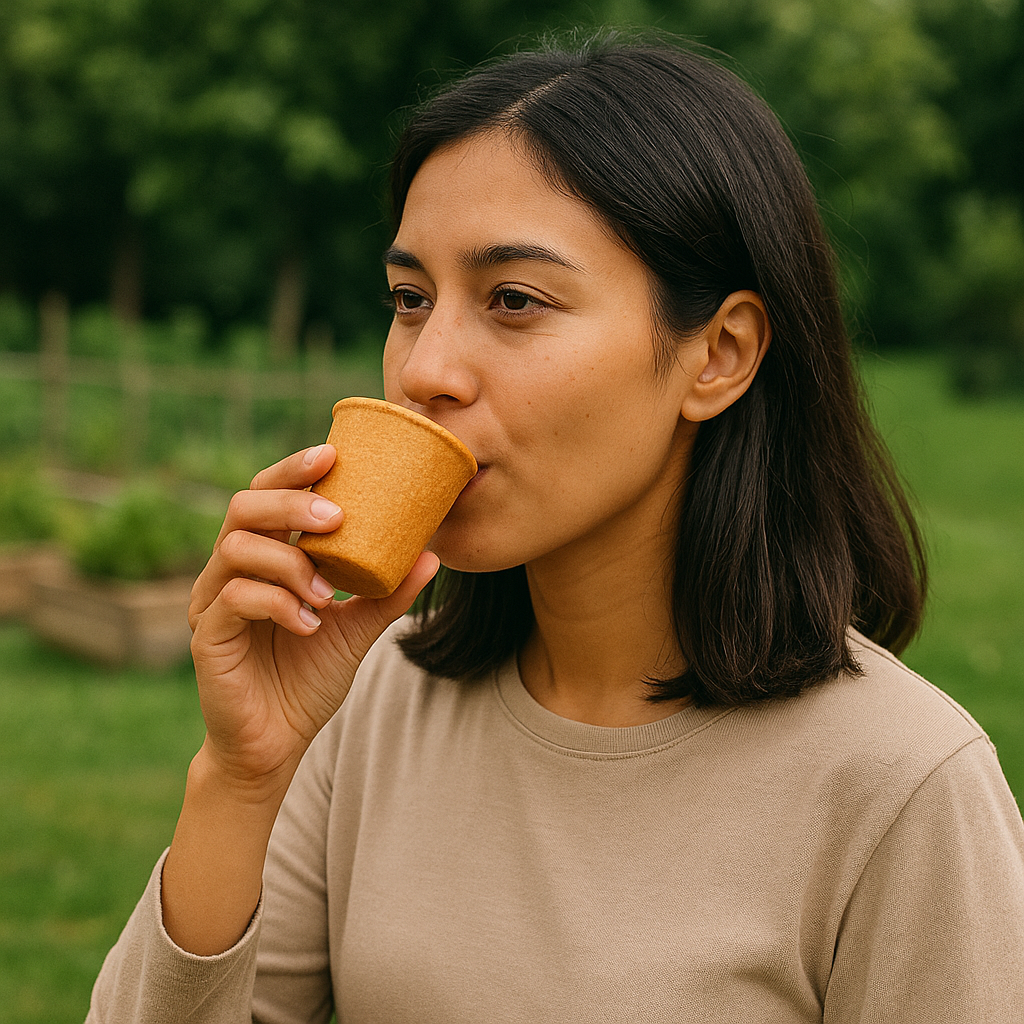 Yes. If the cup is not consumed, it will naturally break down in a composting environment, unlike plastic or paper cups with synthetic linings. This makes them a great zero-waste alternative, whether eaten or disposed of responsibly.
